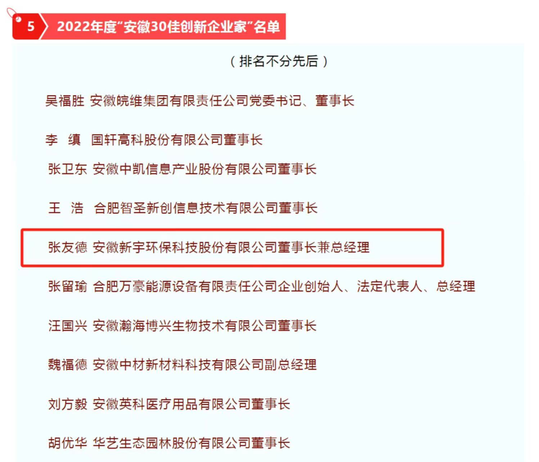 喜報!新宇科技榮獲“安徽創(chuàng)新企業(yè)100強”和張友德董事長榮獲“安徽30佳創(chuàng)新企業(yè)家”稱號