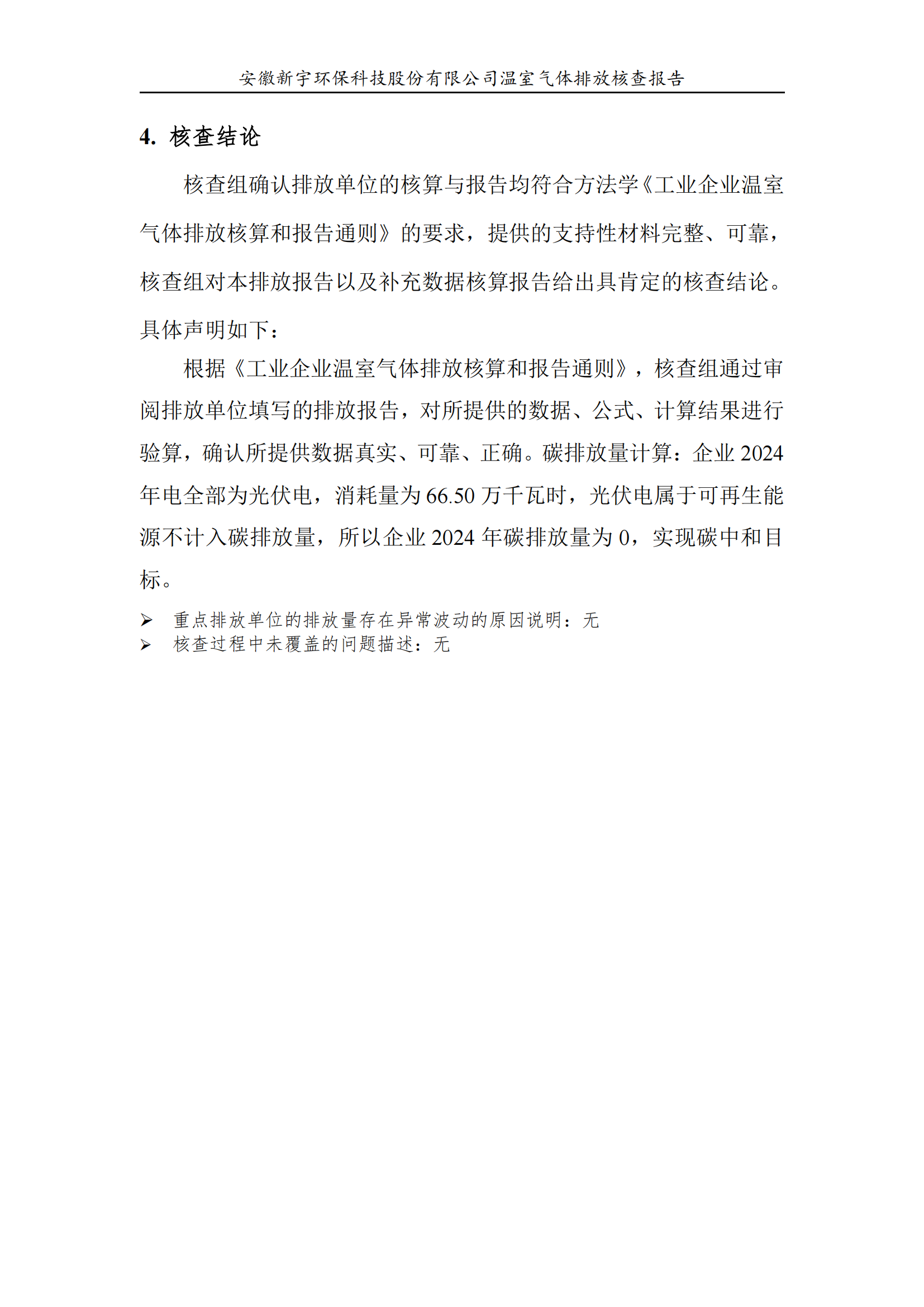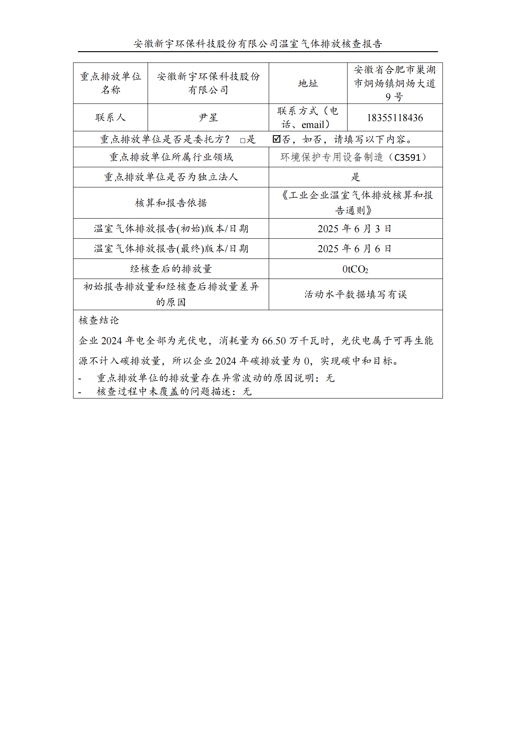 安徽新宇環(huán)保科技股份有限公司2024年溫室氣體排放核查報(bào)告