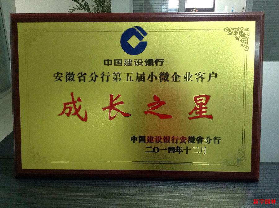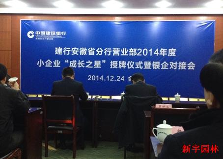 新宇園林榮獲建設(shè)銀行安徽省分行2014年企業(yè)“成長(zhǎng)之星”稱號(hào)