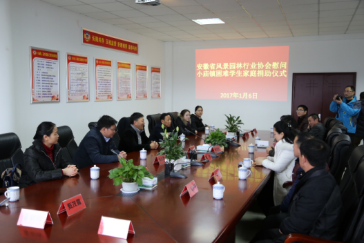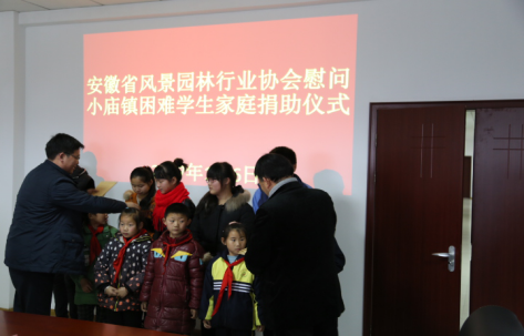 1月6日,安徽省風(fēng)景園林行業(yè)協(xié)會常務(wù)副會長兼秘書長、安徽新宇生態(tài)園林股份有限公司董事長張友德前往蜀山區(qū)小廟鎮(zhèn)參加行業(yè)協(xié)會組織的扶貧助學(xué)捐贈活動。