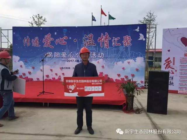 2017年6月6日,安徽新宇生態(tài)園林股份有限公司德和公園項(xiàng)目部積極參與渦陽(yáng)縣愛(ài)心者協(xié)會(huì)組織的“傳遞愛(ài)心?溫情匯聚”公益活動(dòng),為尿毒癥患者伸出援助之手。