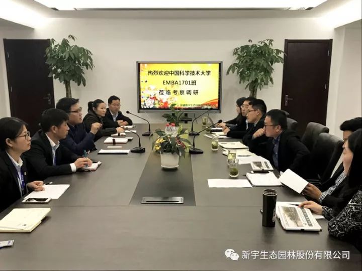 周潔茹董事帶領(lǐng)考察團參觀新宇生態(tài)總部辦公區(qū)及在肥項目,并向蒞臨的1701班同學(xué)介紹了新宇生態(tài)的發(fā)展歷程和企業(yè)文化。新宇生態(tài)董事長張友德代表公司對中國科學(xué)技術(shù)大學(xué)EMBA1701班同學(xué)的到來表示熱烈歡迎,并希望以后能加強交流合作,做到互通有無、互利共惠。新宇生態(tài)部分職能部門負責(zé)人列席此次會議。