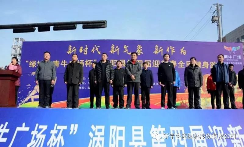 2018年1月1日,新年第一天,渦陽縣舉行“綠城·青牛廣場杯”第四屆迎新春全民健身跑活動,此次活動以新宇生態(tài)承建的德和公園為起點和終點。渦陽縣委書記胡明文,縣委副書記、縣長熊國洪,縣人大常委會主任、縣政協(xié)黨組書記劉峰,縣委副書記陳長安及縣四大班子成員和縣直單位的廣大干部職工踴躍參加健身跑活動,以昂揚向上的姿態(tài)共同奔向充滿希望的2018年。縣委常委、宣傳部長、縣總工會主席鄭虹主持本次活動。