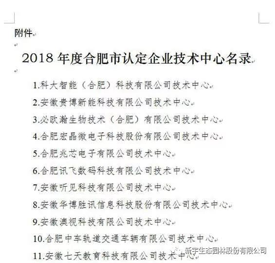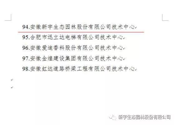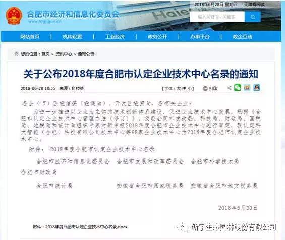 近日,合肥市經(jīng)信委、合肥市發(fā)改委、合肥市科技局、合肥市財(cái)政局、合肥市統(tǒng)計(jì)局、合肥市國(guó)稅、合肥市地稅7家單位聯(lián)合發(fā)文通知,認(rèn)定安徽新宇生態(tài)園林股份有限公司技術(shù)中心為2018年度合肥市認(rèn)定企業(yè)技術(shù)中心。
