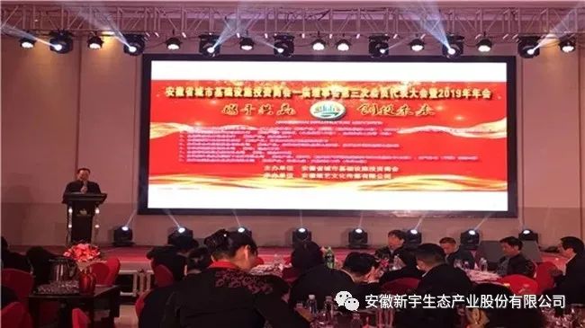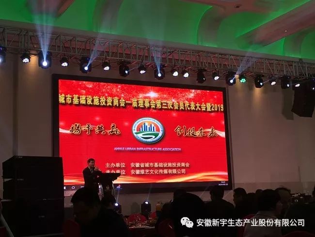 2019年3月23日下午,安徽省城市基礎(chǔ)設(shè)施投資商會在合肥市白金漢爵大酒店召開了第五次會長會議和一屆理事會第三次會員代表大會暨2019年年會。新宇生態(tài)作為副會長單位,董事長張友德應(yīng)邀出席此次會議。