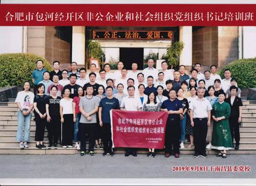 為慶祝中華人民共和國成立70周年,合肥市包河經(jīng)開區(qū)非公綜合黨委為做好第二批“不忘初心,牢記使命”主題教育思想動員活動,于2019年9月8日至9月12日組織來自園區(qū)50余名非公企業(yè)和社會組織黨組織書記進(jìn)行集體教學(xué)活動。公司黨支部書記陳燕燕參加此次培訓(xùn)。