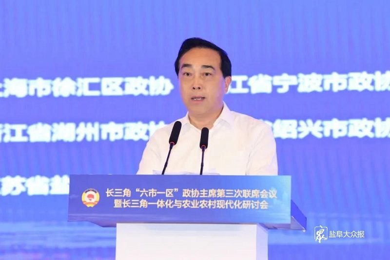 2021年6月17日,長三角“六市一區(qū)”政協(xié)主席第三次聯(lián)席會議在鹽城召開。江蘇省政協(xié)副主席王榮平出席會議并講話,鹽城市委書記戴源致辭,合肥市政協(xié)委員、安徽新宇生態(tài)產(chǎn)業(yè)股份有限公司董事長張友德代表企業(yè)家發(fā)言。上海市徐匯區(qū)政協(xié)主席胡敏、安徽省合肥市政協(xié)主席韓冰、江蘇省南通市政協(xié)主席黃巍東、浙江省紹興市政協(xié)主席魏偉、浙江省寧波市政協(xié)副主席葉劍鳴、浙江省湖州市政協(xié)副主席李紅出席會議。市政協(xié)主席陳紅紅主持開幕式。