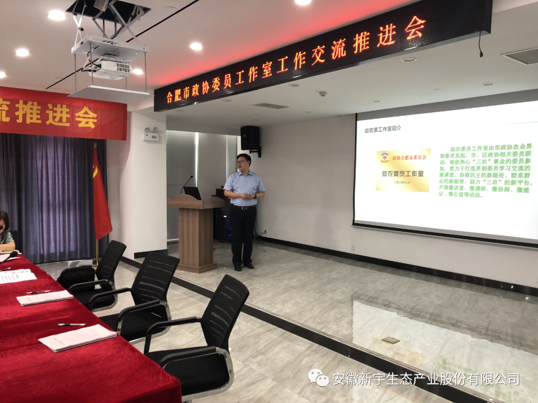 2021年8月5日,合肥市政協(xié)在榮獲“全國(guó)政協(xié)系統(tǒng)杰出委員工作室(站)”的助農(nóng)委員工作室舉辦委員工作室交流推進(jìn)會(huì)。市政協(xié)黨組副書(shū)記、副主席張小樵參加會(huì)議并講話,市政協(xié)副秘書(shū)長(zhǎng)賈東明主持會(huì)議,市政協(xié)委員、助農(nóng)委員工作室負(fù)責(zé)人、安徽新宇生態(tài)產(chǎn)業(yè)股份有限公司董事長(zhǎng)張友德等26名來(lái)自全市的委員工作室牽頭人參加了會(huì)議。