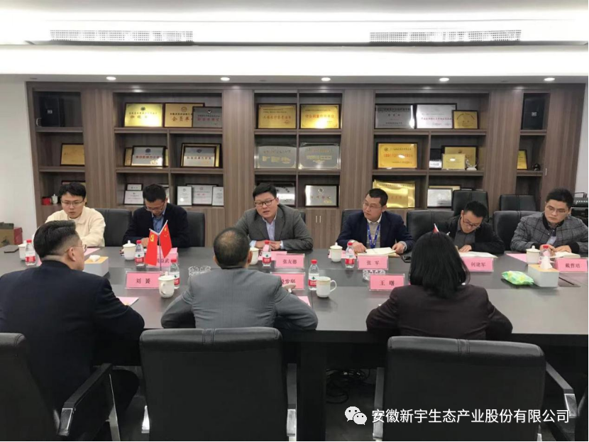 張友德董事長對(duì)殷發(fā)堅(jiān)總經(jīng)理一行表示熱烈歡迎,并介紹了新宇生態(tài)近年轉(zhuǎn)型發(fā)展概況及技術(shù)研發(fā)能力。張友德董事長表示:企業(yè)的生存和發(fā)展對(duì)國家政策和行業(yè)定位依賴度很高,新宇堅(jiān)持踐行“綠水青山就是金山銀山”發(fā)展理念,緊跟國家發(fā)展思路與步伐,順勢而為,乘勢而上,經(jīng)營上一直遵循差異化發(fā)展戰(zhàn)略,秉承“技術(shù)引領(lǐng)、人才至上”理念,扎根行業(yè),精耕細(xì)作,發(fā)展?jié)摿薮?,希望和招行建立綠色金融合作機(jī)制,助力國家戰(zhàn)略政策落實(shí)。