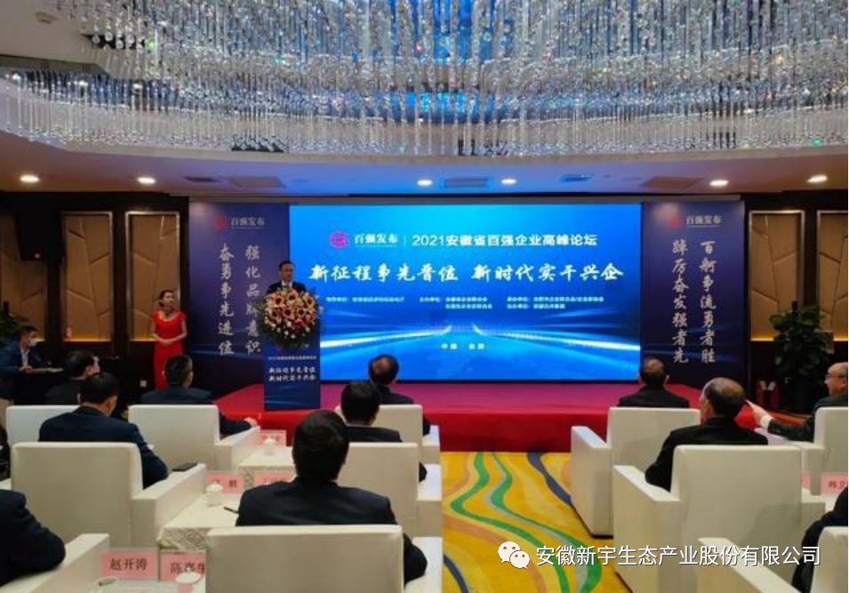 2021年12月7日,安徽省企業(yè)聯(lián)合會、安徽省企業(yè)家聯(lián)合會在合肥組織召開了主題為“新征程爭先晉位 新時代實干興企”的安徽省百強(qiáng)企業(yè)高峰論壇,會上發(fā)布了“2021安徽百強(qiáng)企業(yè)”、“2021安徽制造業(yè)百強(qiáng)企業(yè)”、“2021安徽服務(wù)業(yè)百強(qiáng)企業(yè)”榜單。新宇生態(tài)上榜“2021安徽服務(wù)業(yè)百強(qiáng)企業(yè)”。