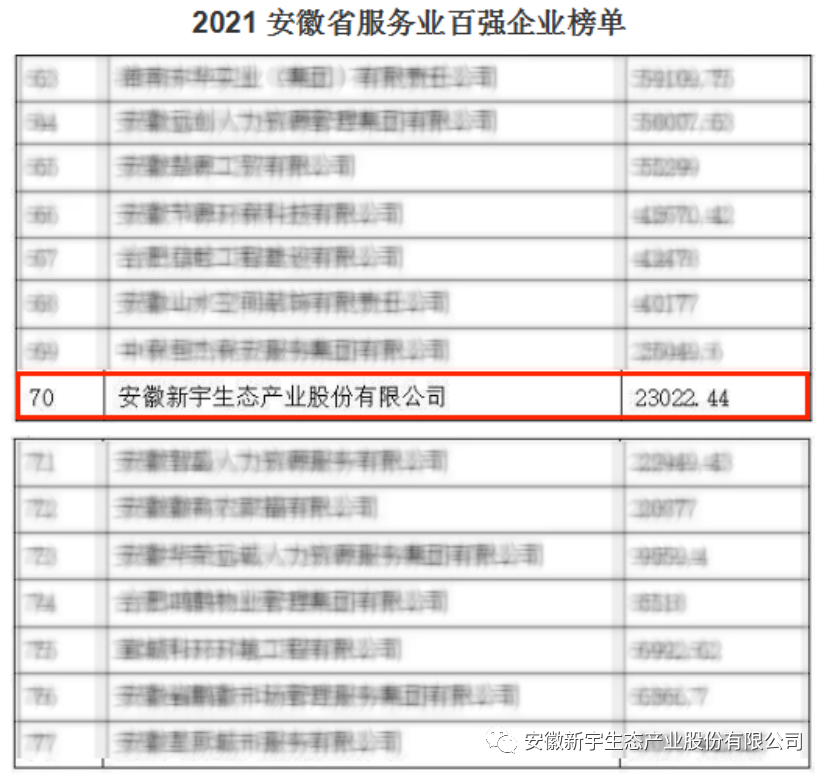 喜報!新宇生態(tài)入選“安徽省服務(wù)業(yè)企業(yè)100強(qiáng)”