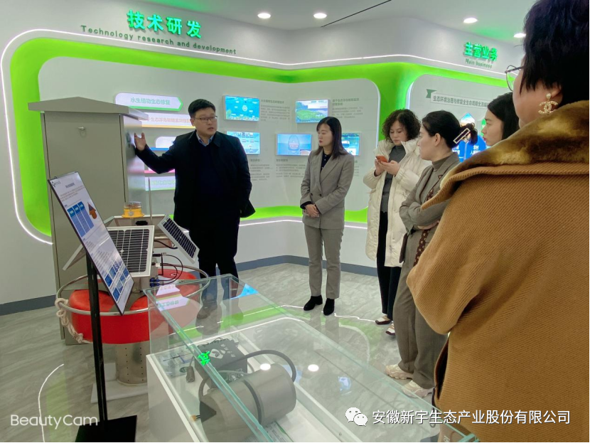 會后,安徽新宇環(huán)??萍紡堄训露麻L帶領(lǐng)企業(yè)家們參觀新宇環(huán)保總部六樓展廳,張友德董事長介紹了公司的水生態(tài)環(huán)境綜合治理主營業(yè)務(wù)、“技術(shù)引領(lǐng)、人才至上”的創(chuàng)新理念以及實(shí)現(xiàn)綠水青山的美好愿景,受到企業(yè)家們的一致認(rèn)可與贊許。