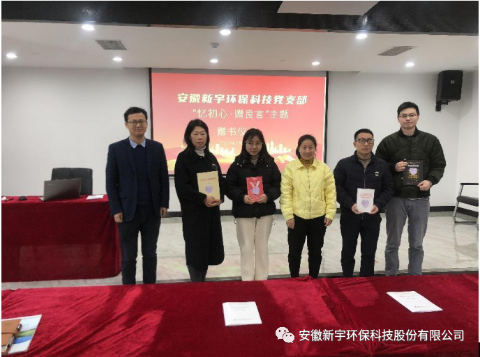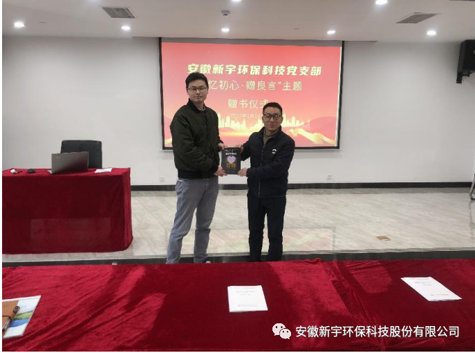 2022年2月26日上午,贈(zèng)書(shū)儀式在新宇科技總部六樓會(huì)議室隆重舉行,安徽新宇環(huán)??萍键h支部書(shū)記錢(qián)益武主持并發(fā)表講話、宣傳委員何建軍、組織委員萬(wàn)宇廷、人力資源部王云飛以及二月份生日的公司員工參加,黨支部分別給本月過(guò)生日的公司員工送上推介的好書(shū)并附上贈(zèng)書(shū)寄語(yǔ)。