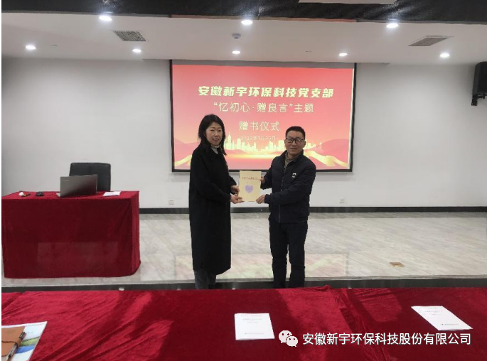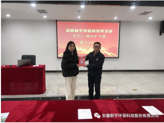 為深入貫徹落實(shí)習(xí)近平新時(shí)代中國(guó)特色社會(huì)主義思想和黨的十九大精神,開(kāi)展全民閱讀活動(dòng),推進(jìn)“兩學(xué)一做”主題教育常態(tài)化制度化,豐富公司員工文化生活,激發(fā)公司全員閱讀熱情,提升公司全員綜合素質(zhì)為出發(fā)點(diǎn)和著力點(diǎn),培育形成愛(ài)讀書(shū)、讀好書(shū)、善讀書(shū)的文明風(fēng)尚。安徽新宇環(huán)保黨支部開(kāi)展二月份“憶初心·贈(zèng)良言”贈(zèng)書(shū)儀式暨主題黨日活動(dòng)?;顒?dòng)由安徽新宇環(huán)??萍键h支部與人力資源部共同開(kāi)展。