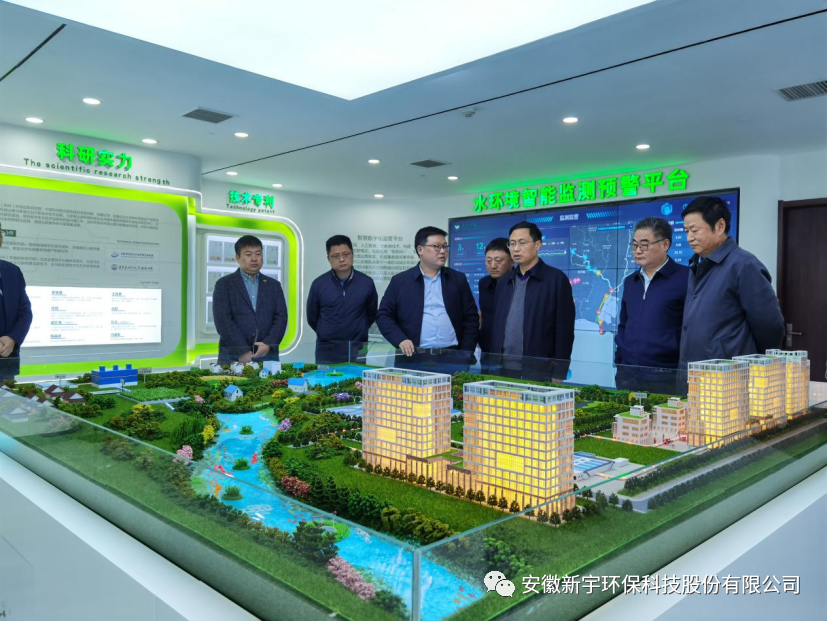 會(huì)后,韋建華主任一行在張友德董事長的陪同下參觀了位于安徽新宇環(huán)??萍脊煞萦邢薰玖鶚堑乃鷳B(tài)環(huán)境治理與修復(fù)展廳。