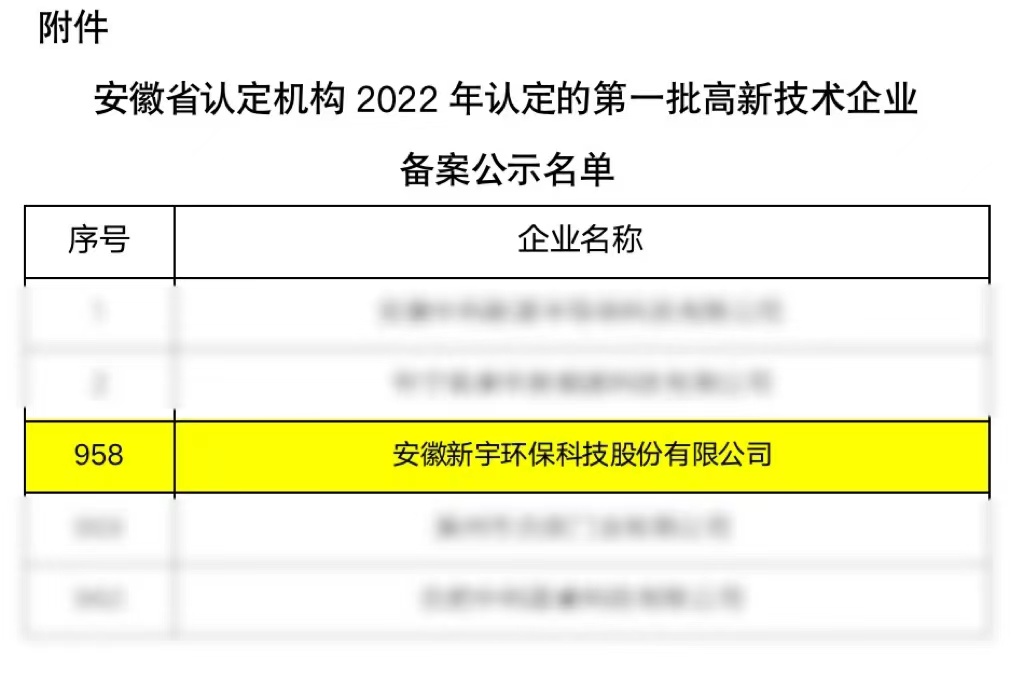 2022年10月18日,新宇科技再添佳訊。在高新技術(shù)企業(yè)認(rèn)定管理工作網(wǎng)發(fā)布的《關(guān)于對安徽省認(rèn)定機(jī)構(gòu)2022年認(rèn)定的第一批高新技術(shù)企業(yè)進(jìn)行備案公示的通知》中,新宇科技成功認(rèn)定“國家高新技術(shù)企業(yè)”稱號。