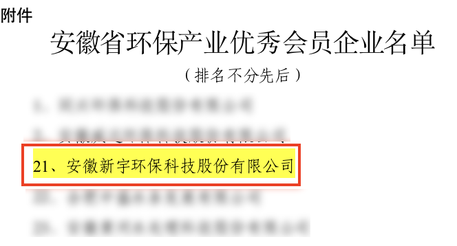 喜報!熱烈祝賀新宇科技榮獲 “安徽省環(huán)保產業(yè)優(yōu)秀會員企業(yè)”榮譽稱號