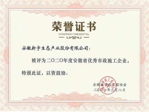 根據(jù)安徽省市政工程協(xié)會《關(guān)于表彰2020年度“安徽省優(yōu)秀市政施工企業(yè)”(市政協(xié)會秘字(2021)3號…